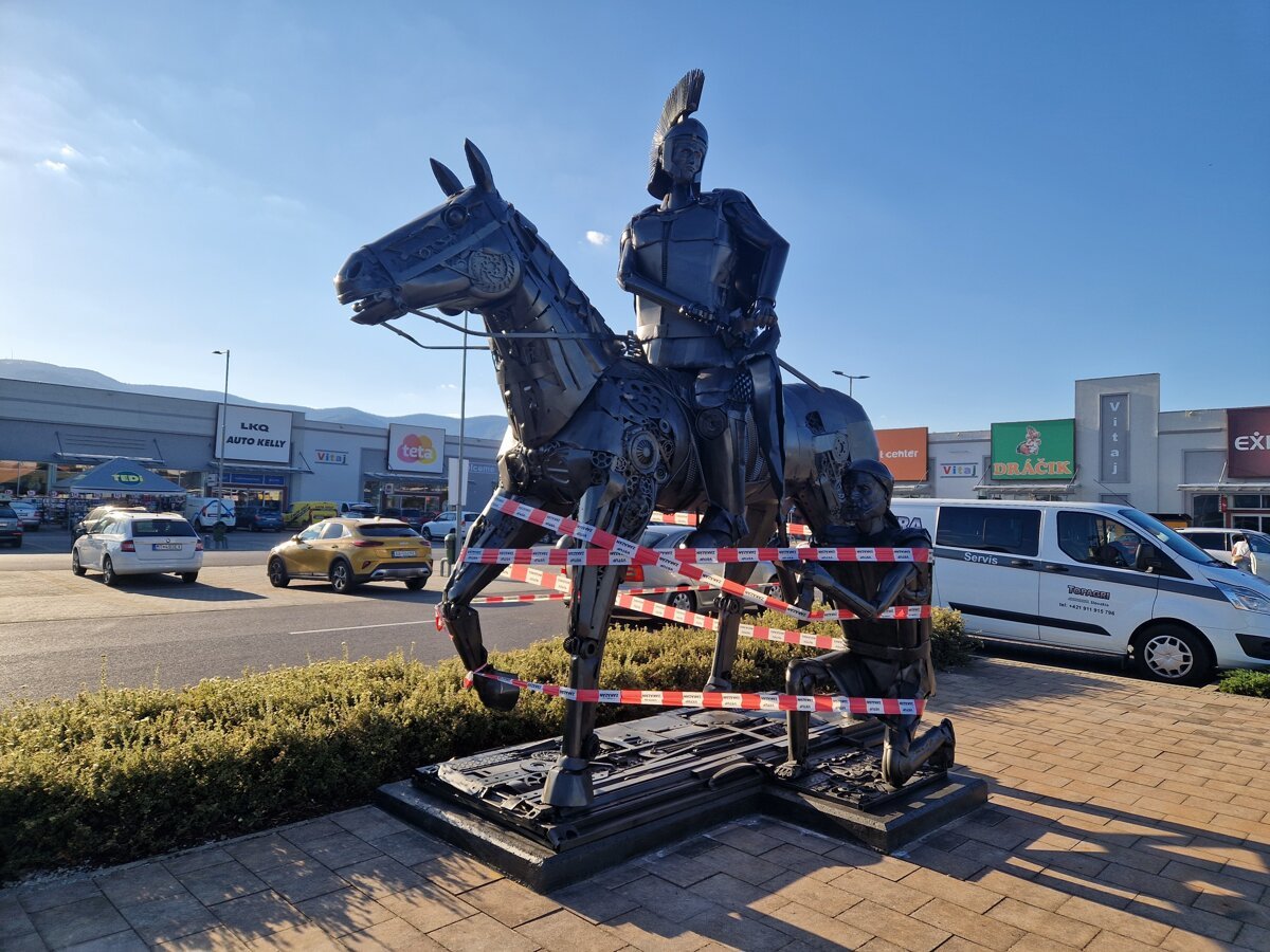 Obchodné centrum Campo di Martin zabezpečilo sochu v modernom prevedení – je z kovošrotu. Svätý Martin tak neprišiel do mesta na bielom, ale na tmavom koni. Stojí pri parkovisku pred obchodným centrom.