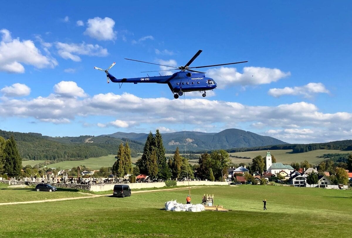 KLÁŠTOR POD ZNIEVOM. Obec Kláštor pod Znievom zabezpečila už tretiu sezónu vynášku materiálu na zrúcaninu hradu Zniev, ktorý sa týči nad obcou. Kým v minulosti s dopravou materiálu pomohla armáda počas vojenského cvičenia, tentoraz pomohla s vynáškou objednaná helikoptéra.