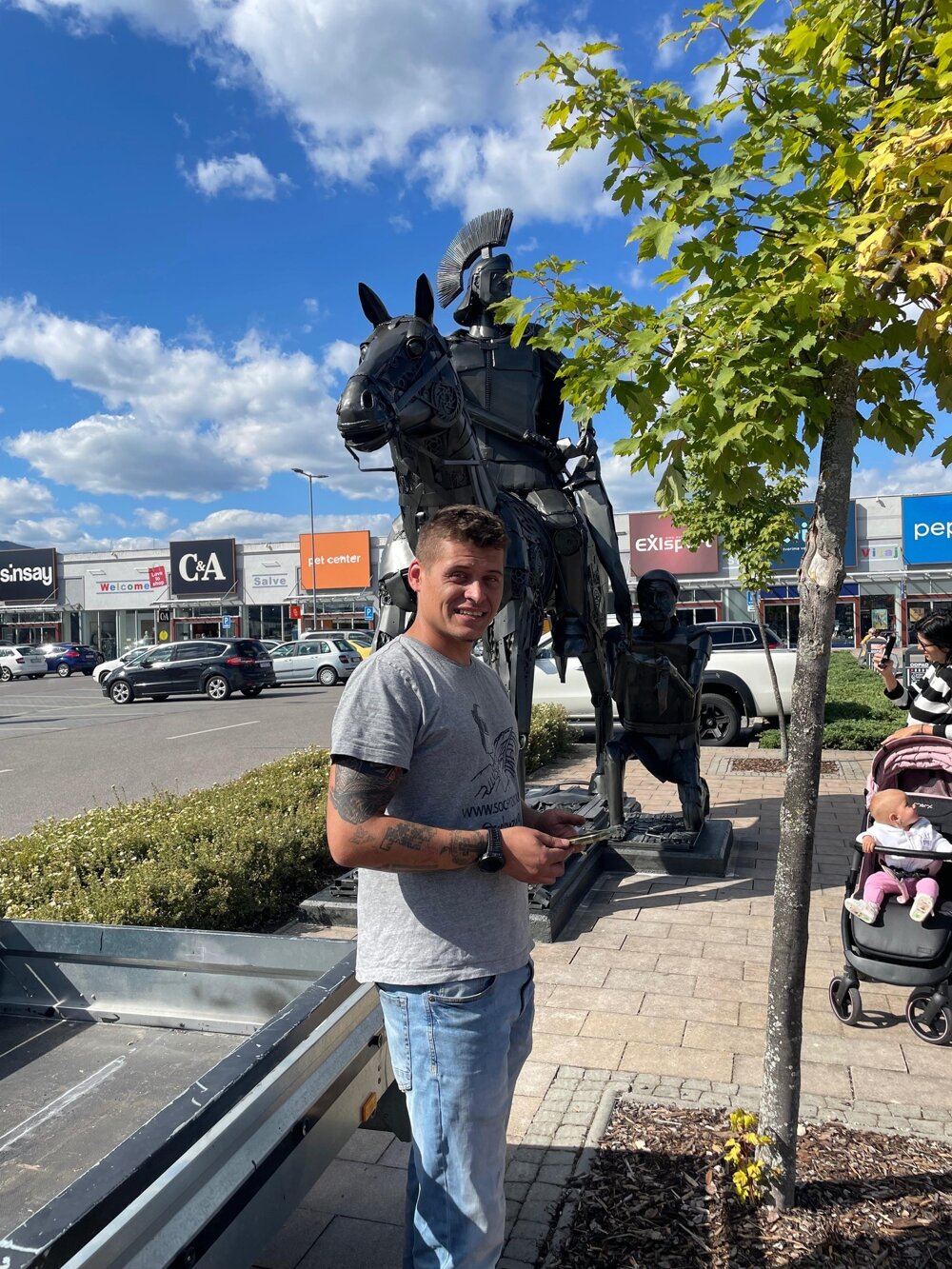 Socha s autorom Jakubom Čavojom.